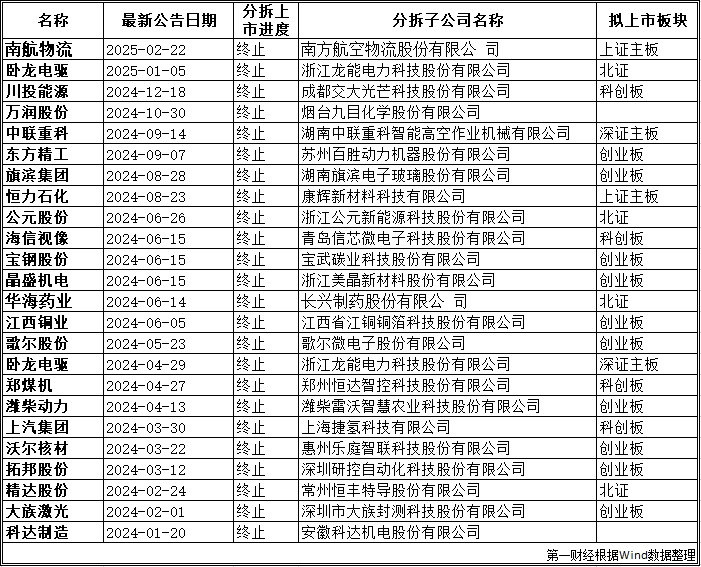 旧年,新“国九条”要求从严监管分拆上市,“A拆A”全面降温。第一财经凭证Wind数据统计:旧年以来,A股已有24例分拆上市推敲中途驱逐。